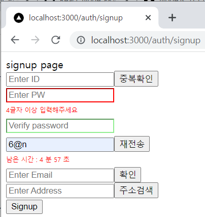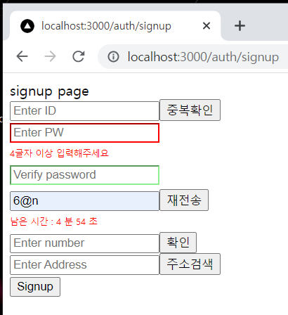 - 인증번호가 틀릴경우 : '인증번호가 틀립니다' 문구를 띄운다.