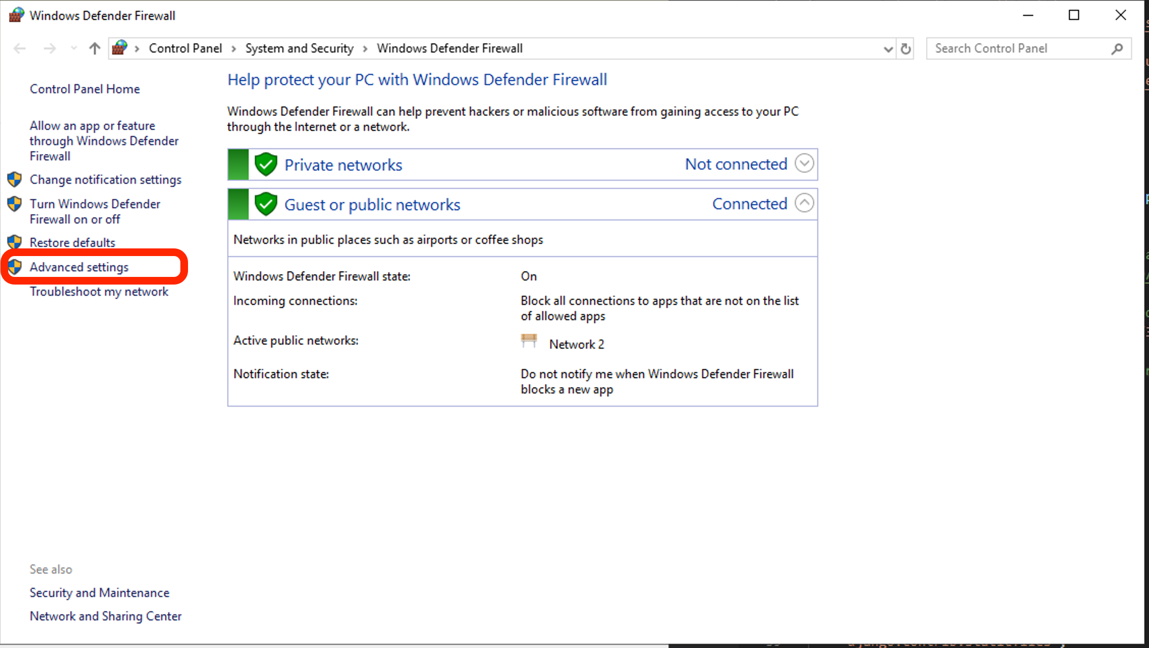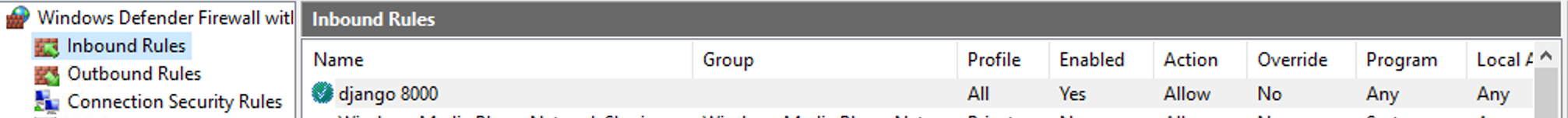 2. 윈도우 서버에서는 방화벽을 따로 설정해주어야 한다. 탐색기에서 firewall을 검색하고 Windows Defender FireWall에 들어간다.