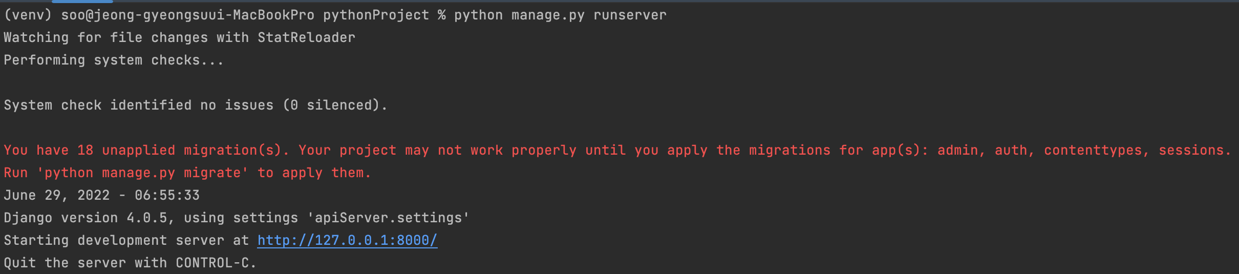 이 구문을 추가해주면 123.45.67.89:8000/ 이런식으로 외부에서 접속이 가능하다. 물론 나중에는 수정해야겠지만 지금은 테스트니까