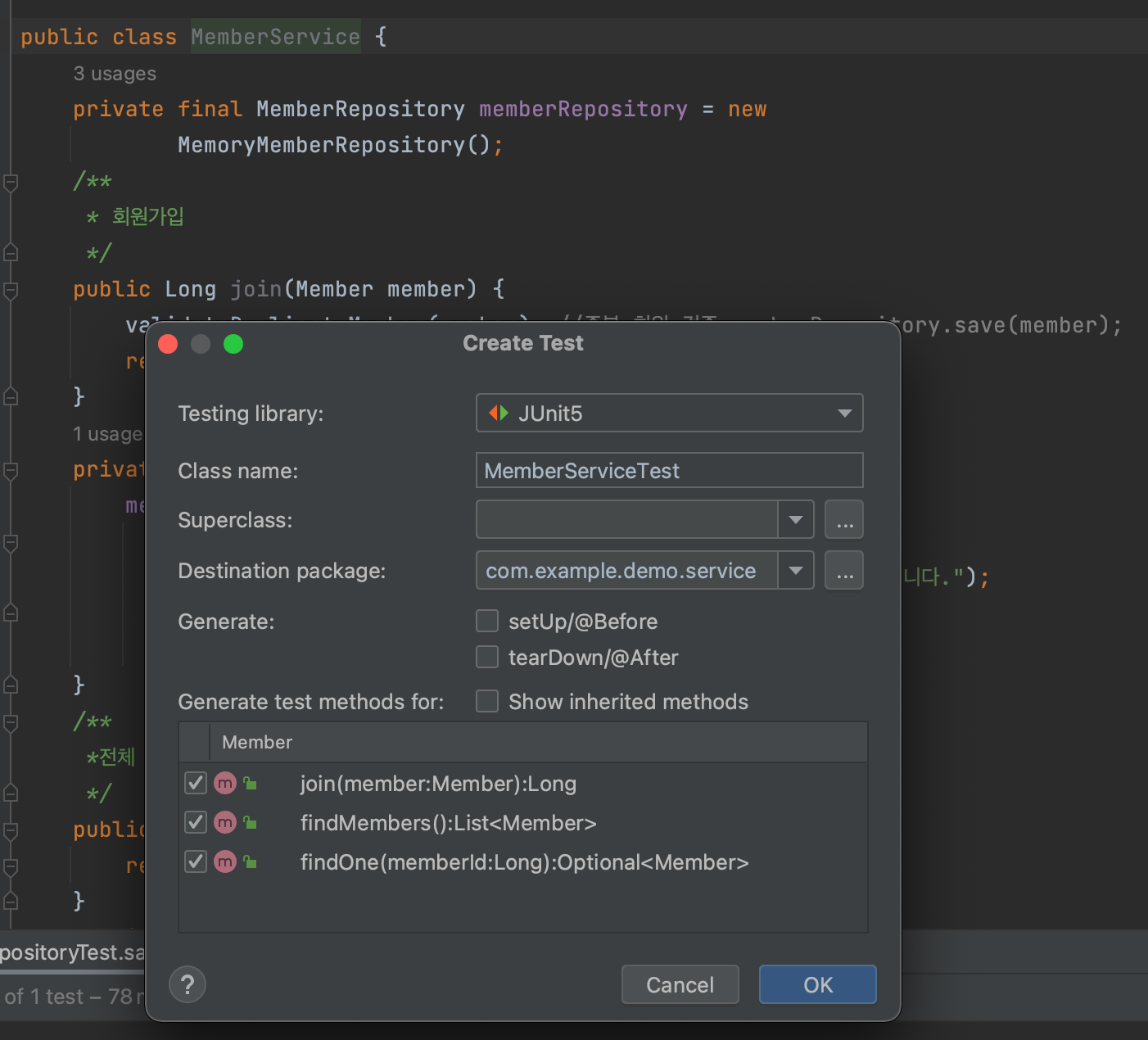 MemoryMemberRepository repository = new MemoryMemberRepository();