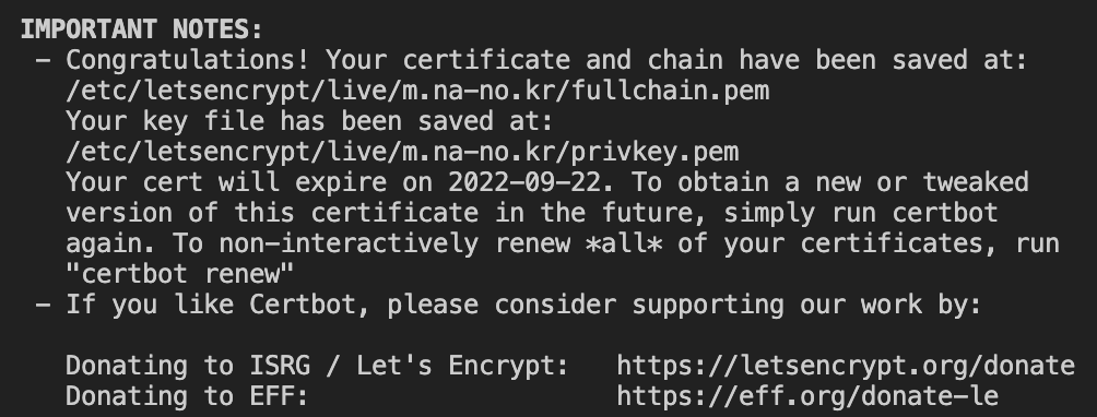 | Nginx | SSL 인증 ( https ) 무료로 적용하기 Let's Encrypt (0) | 2022.06.24 |