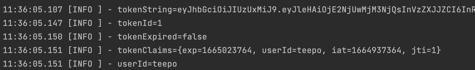 log.info("tokenValue={}",jwtTokenManager.getClaimsFromToken(tokenString));