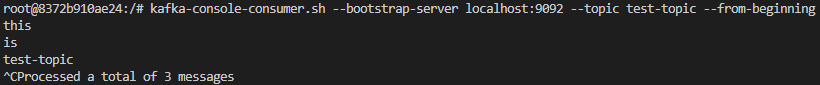 # kafka-console-consumer.sh --bootstrap-server localhost:9092 --topic test-topic --from-beginning